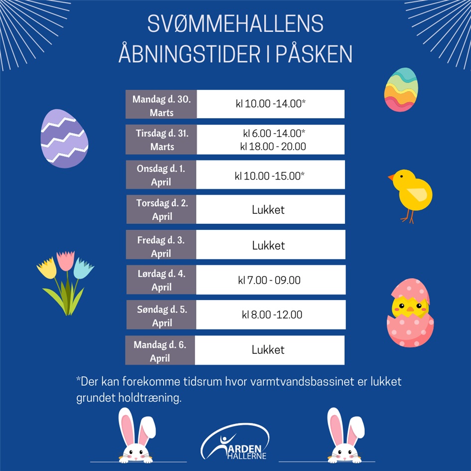 På billedet kan du se hvilke åbningstider der gælder i påsken i Svømmehallen
